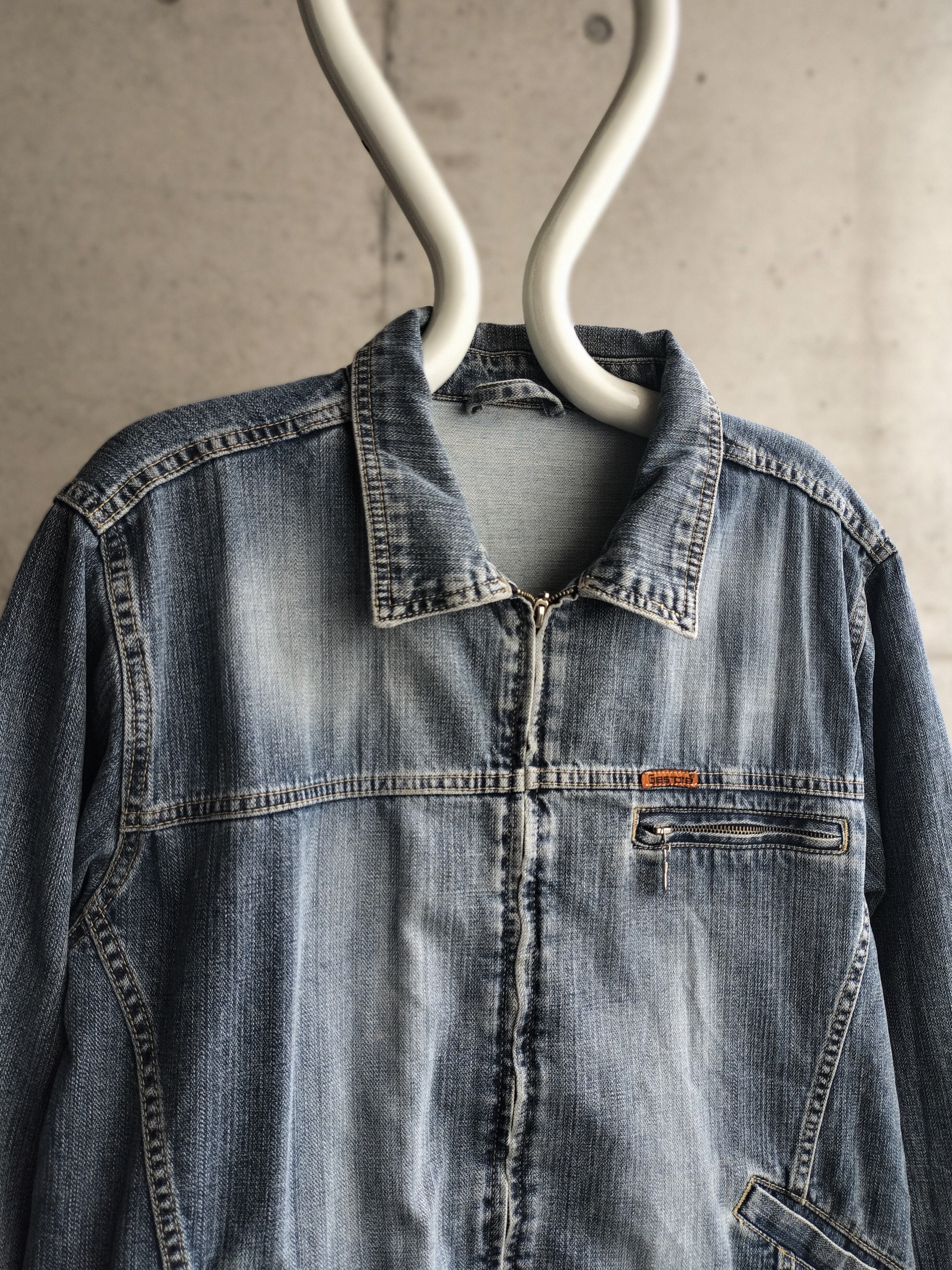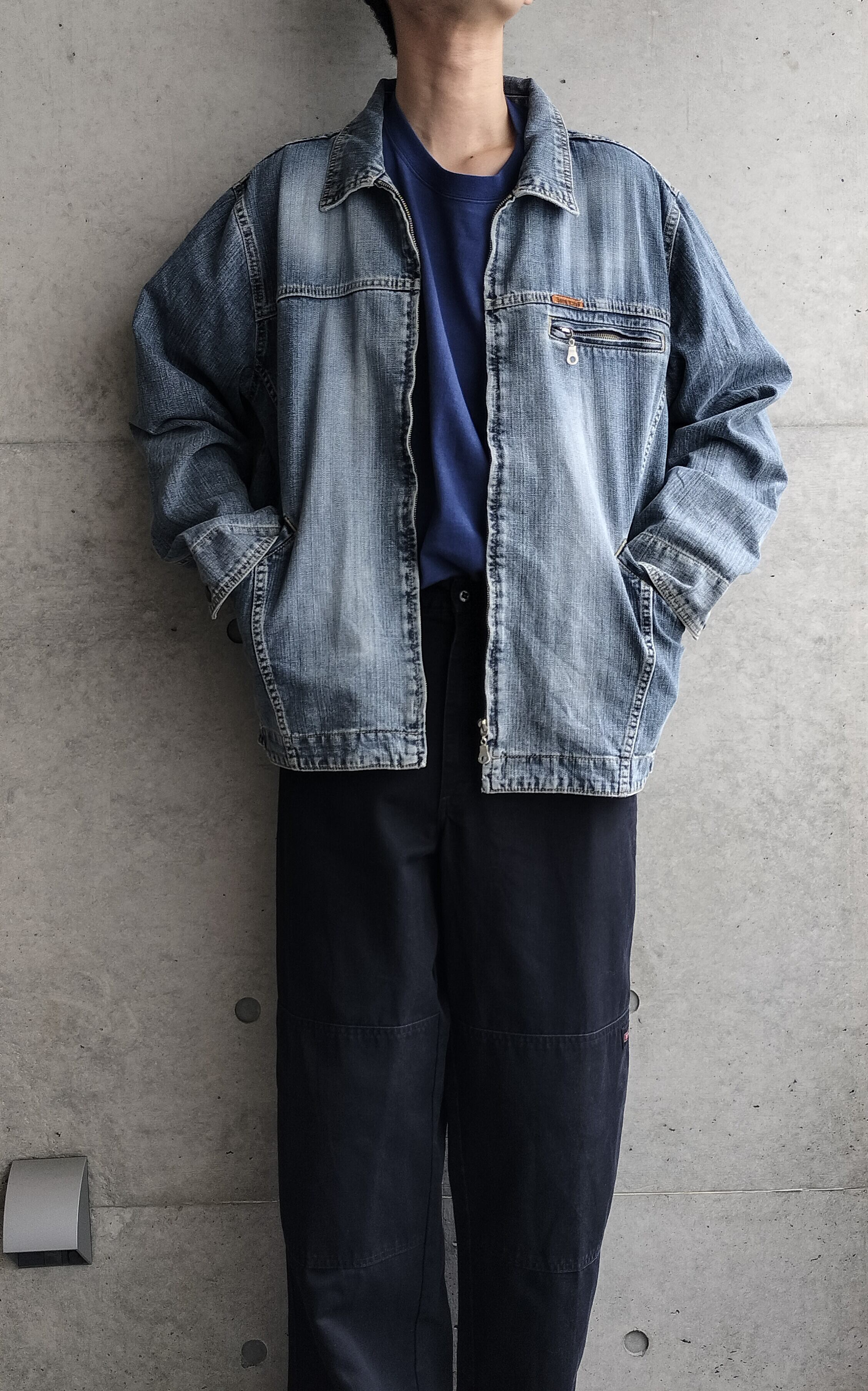 圧倒的な色落ちのデニムブルゾン。退廃的な色落ちが良くてピックしました。ジップ仕様のデニムブルゾンも珍しいです。手を突っ込めるポケット付き。シルエットも抜群です。