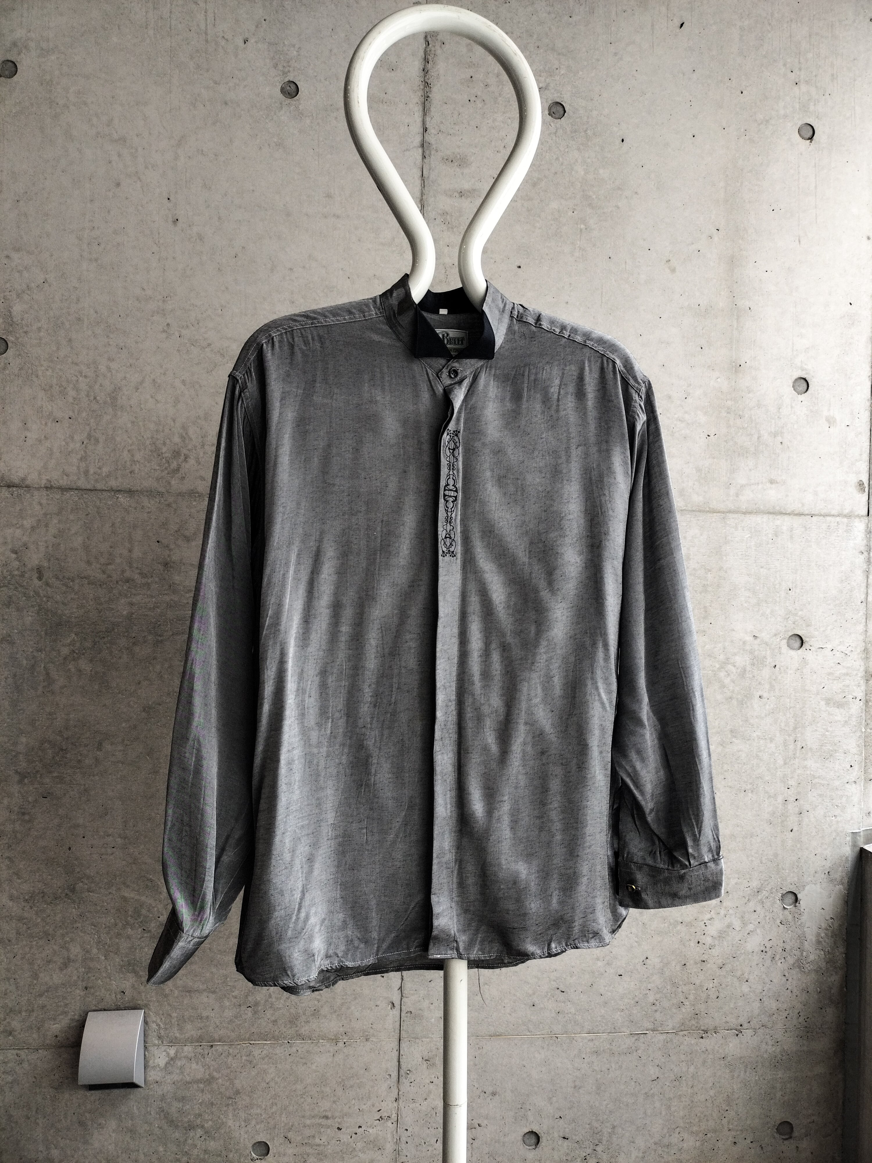 スペシャルなウィングカラーシャツの入荷。珍しいヴィスコース生地で襟が切替タイプです。前たてに刺繍入りなのも素晴らしいです。とろみのドレープ生地。シルエットも完璧です。イタリア製。オマケでカフスボタン付けてます。