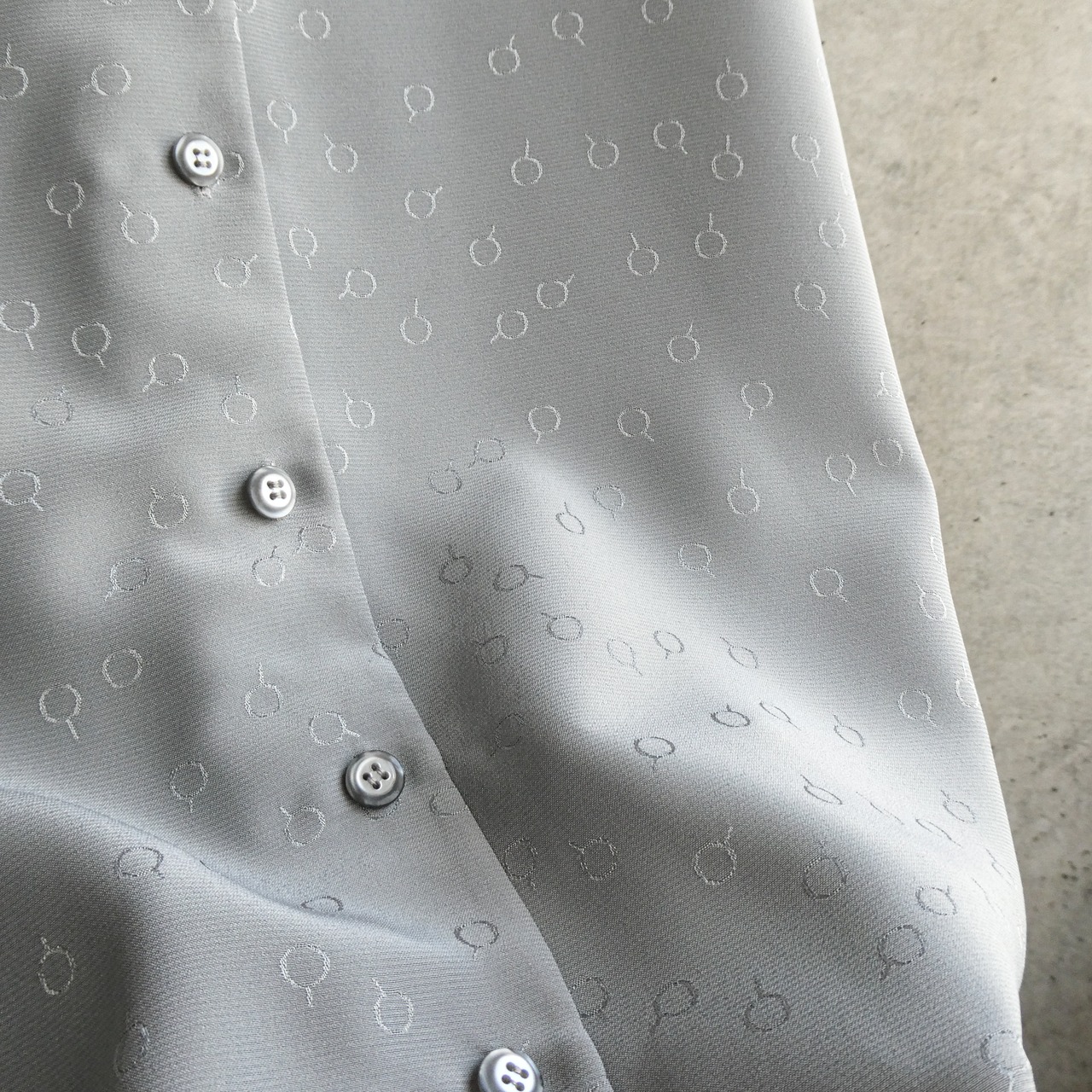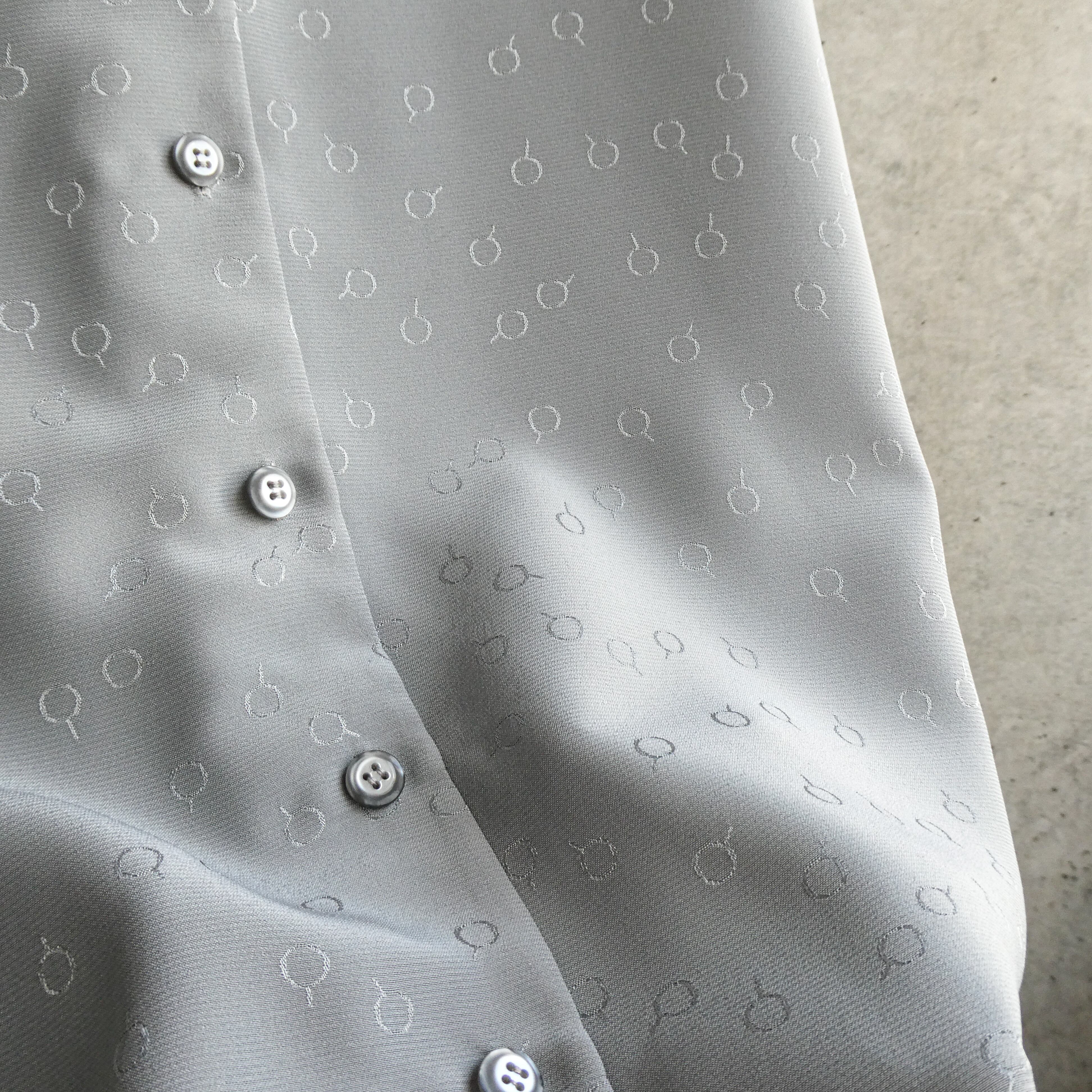 スペースグレー色の総柄シャツ。ドレープ感のある生地。開襟仕様です。身幅、着丈たっぷりで緩く着れるシルエットです。