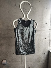 スパンコールのタンクトップ。前面のみスパンコールで、背面は無地です。ドリスでも今季全面スパンコールのアイテムが出ており、本人も着用しておりました。細身のメンズ、レディース向けサイズです。