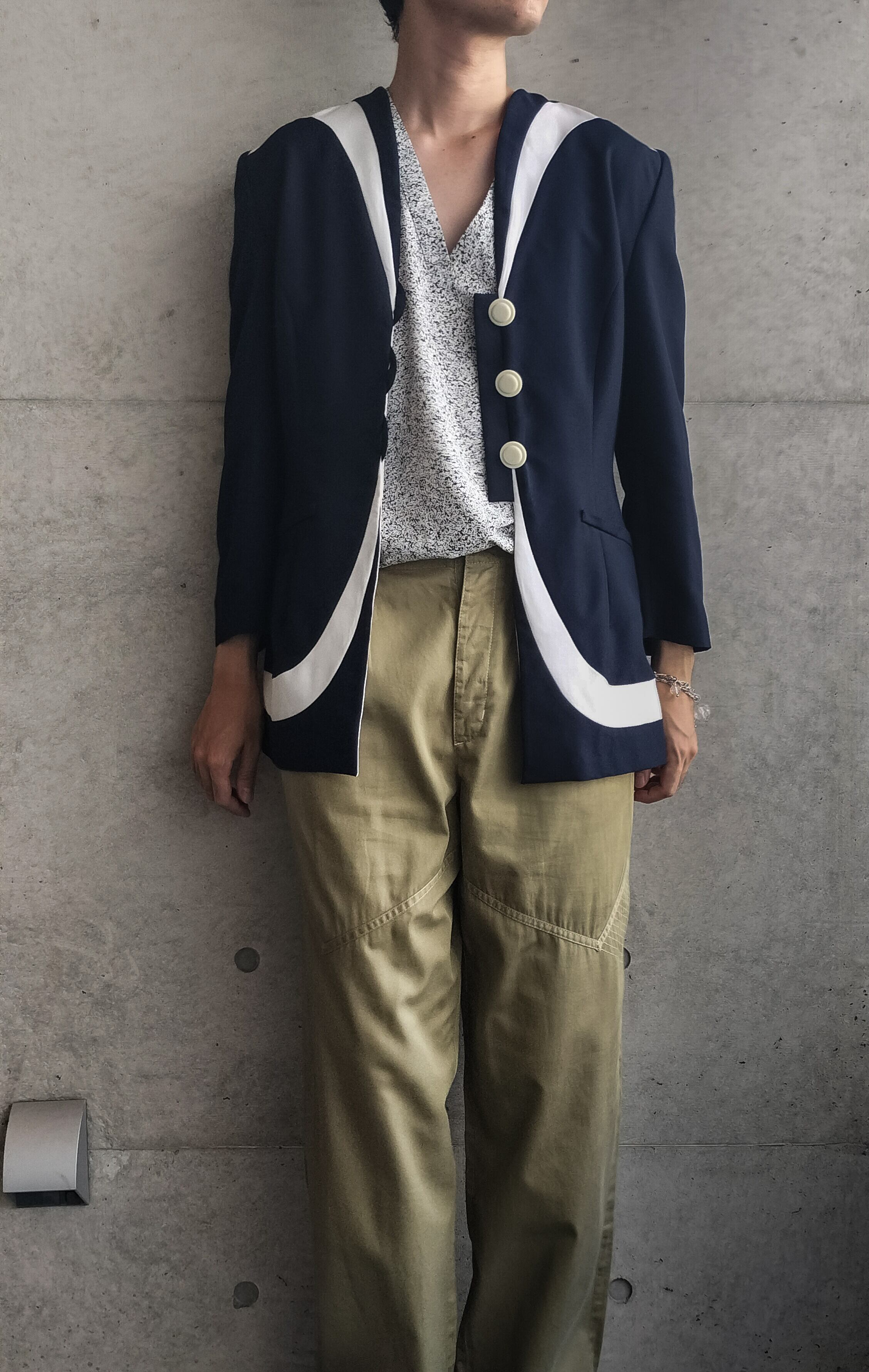 スペシャル。チェコで出たジャケット。イタリア製でカーブを描いた切替ジャケット。kiko感あるデザイン。背面は無地です。本日入荷のカーキのパンツとも相性抜群です。メンズ、レディース問わずオススメです。