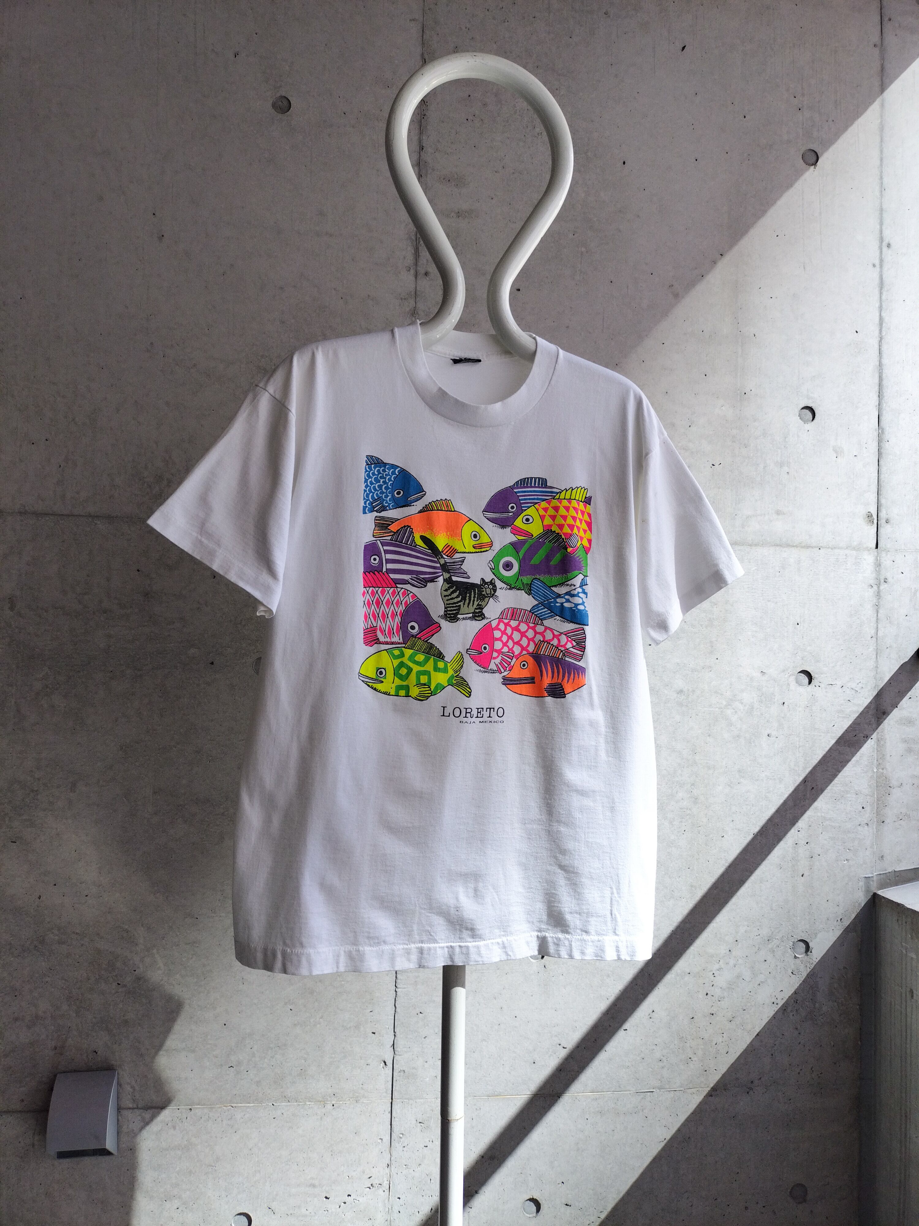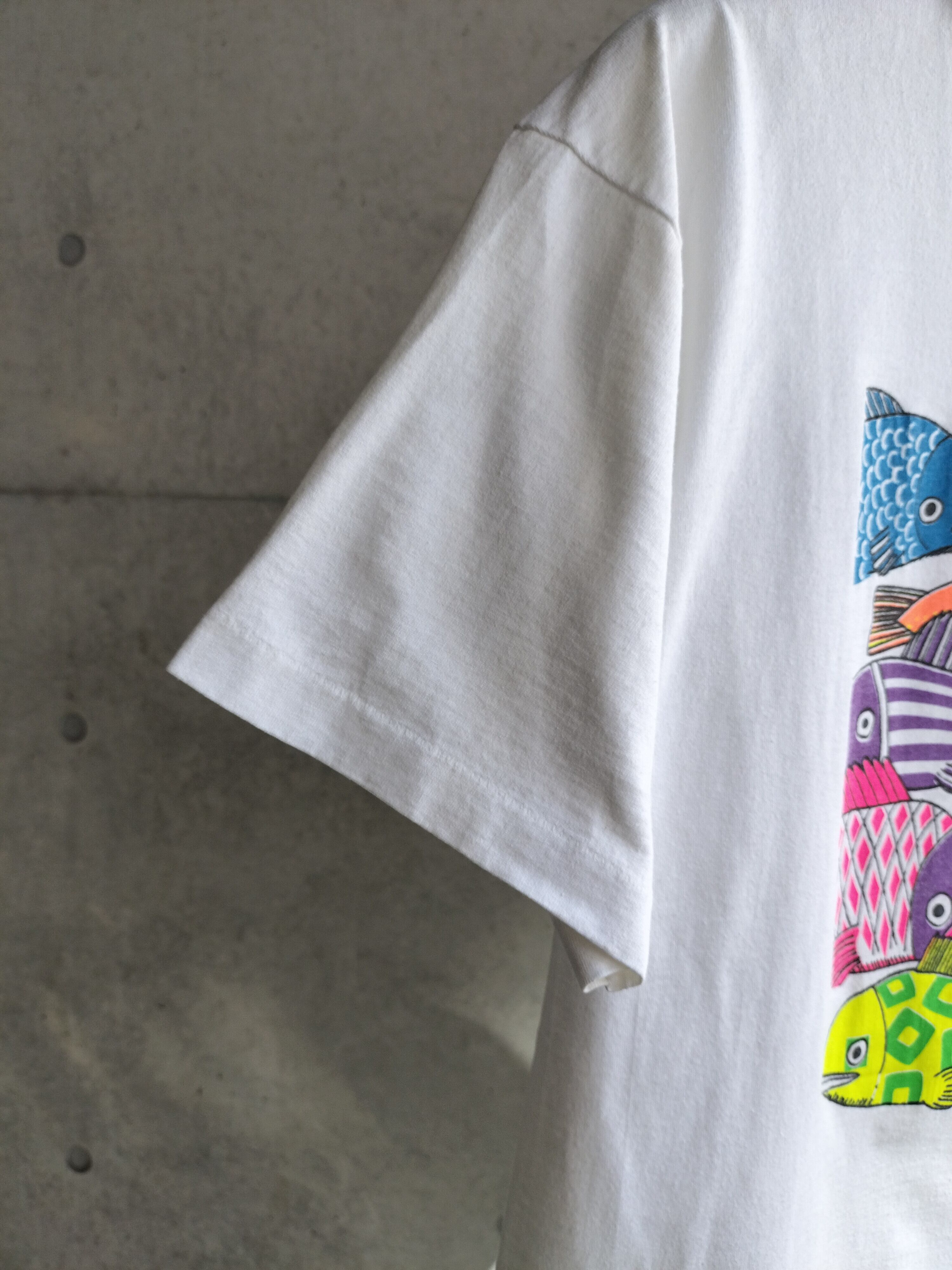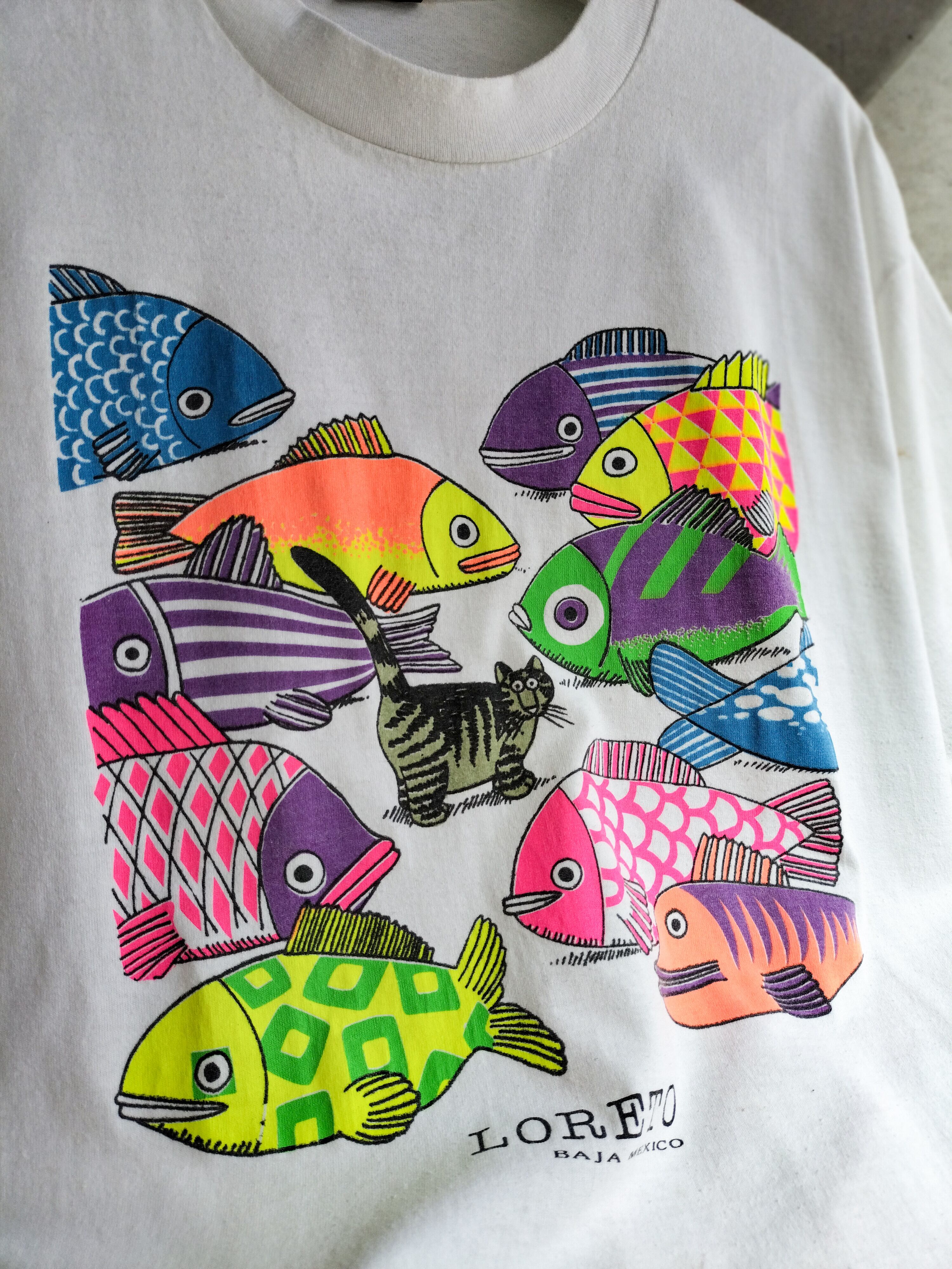 vintage white Kliban Cat fish design T-shirt