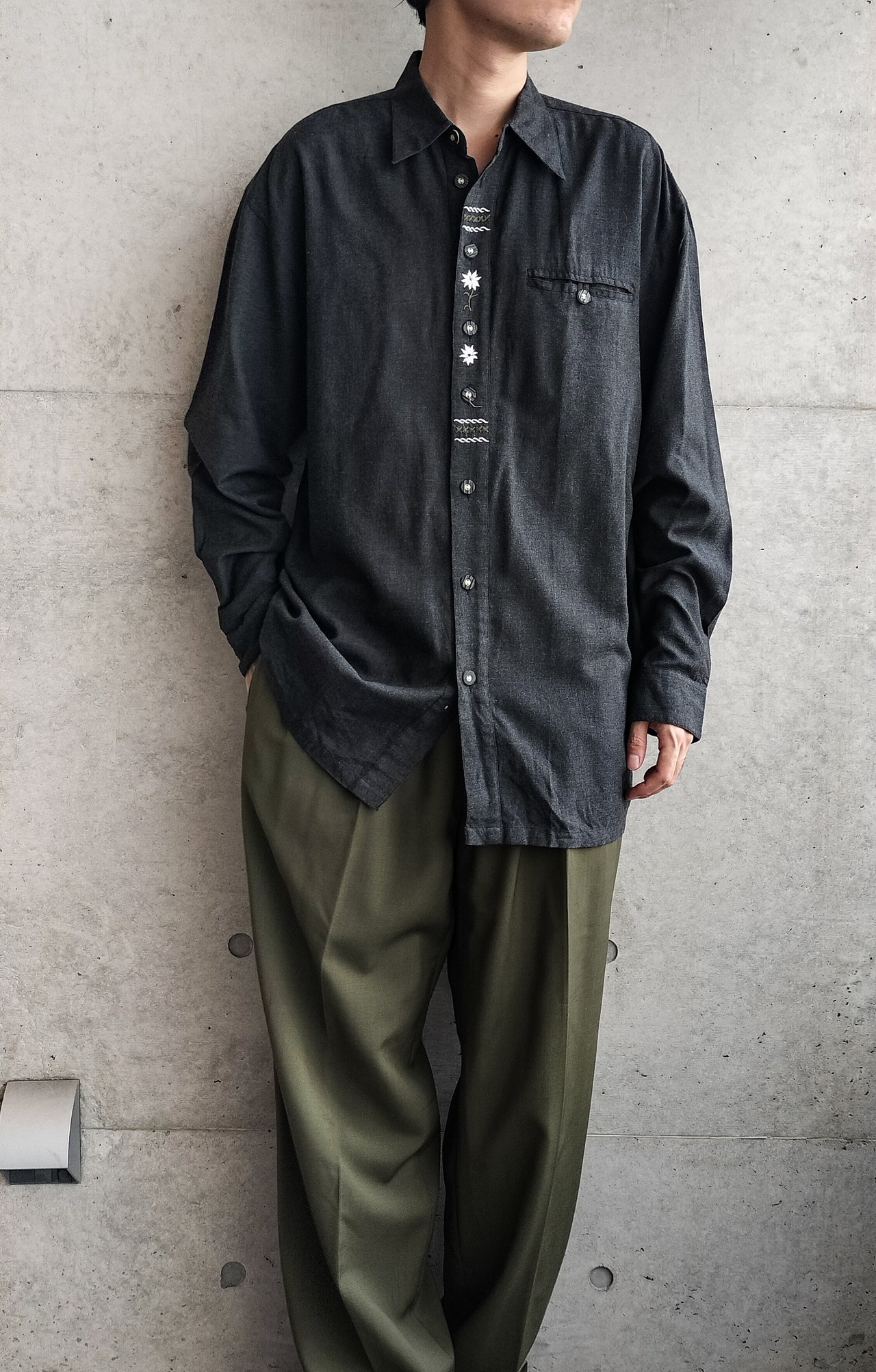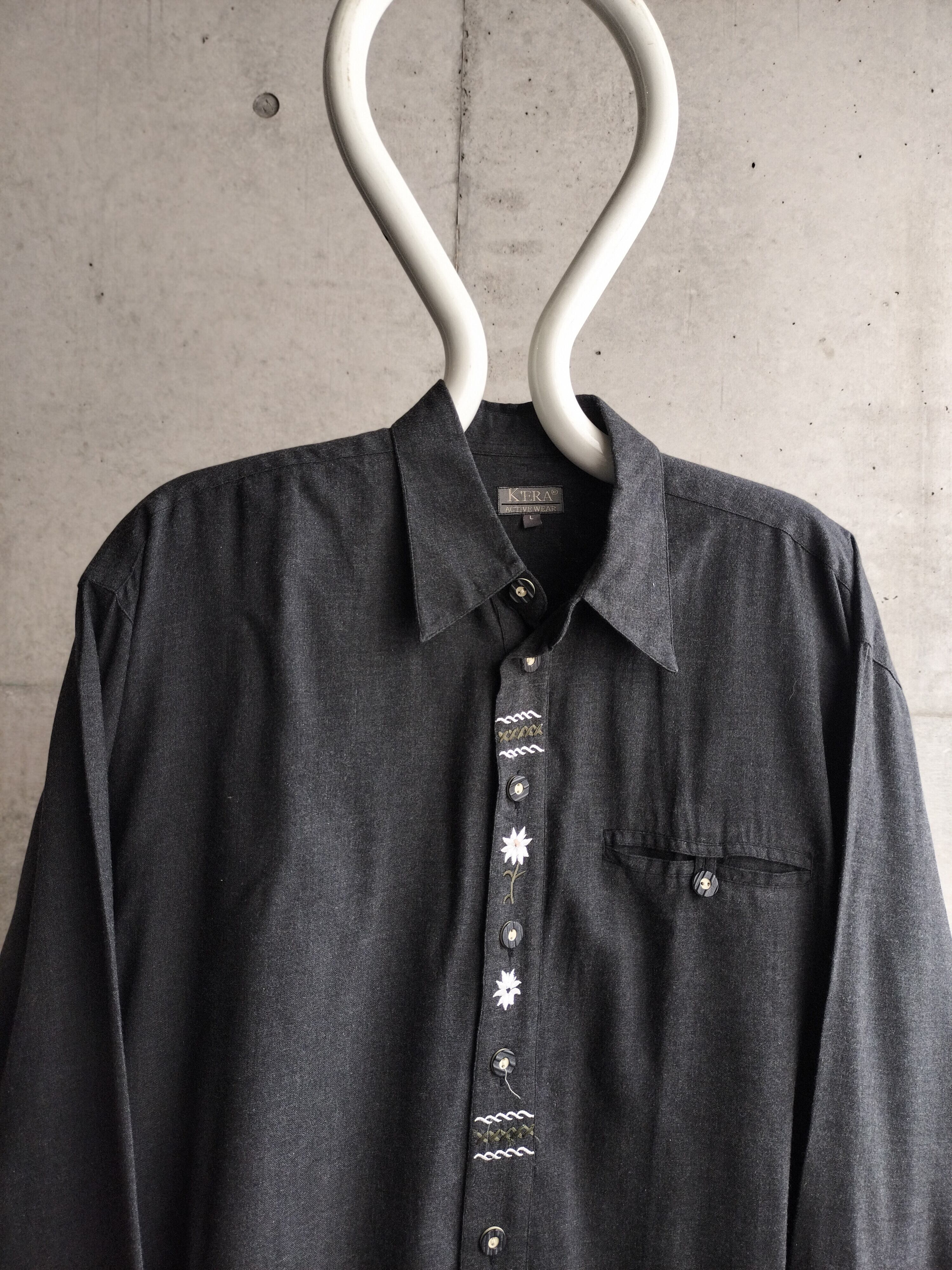 vintage black flannel loose silhouette tirol shirt
