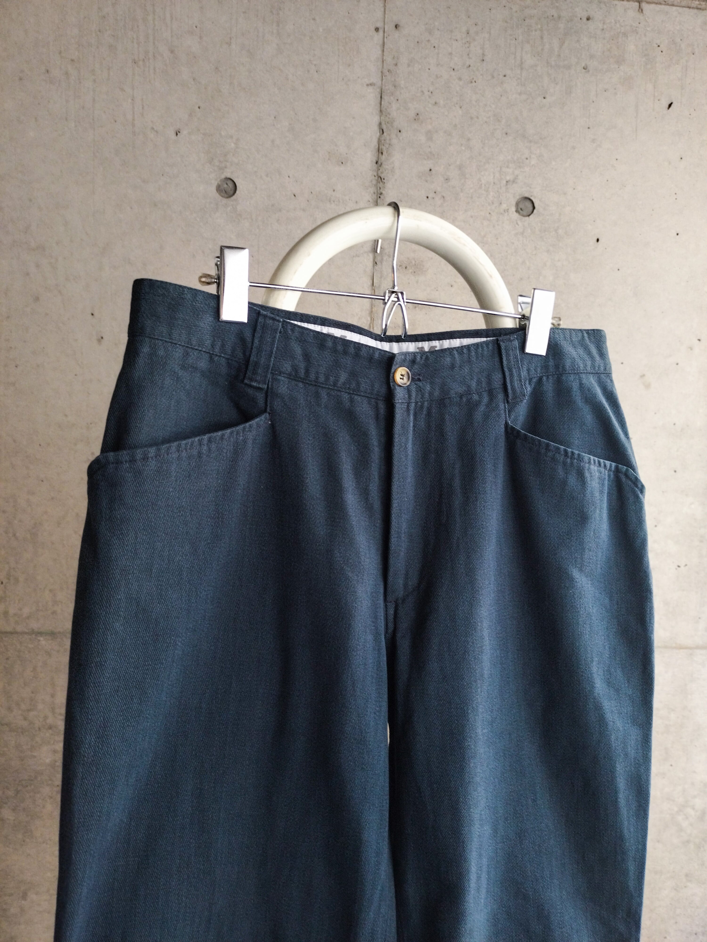 MISSONIのコットンパンツ。デニムを敢えてコットンで表現したような生地と色味。デニムのようなムラ感のある生地です。太すぎず、細すぎない501のようなストレートシルエットです。