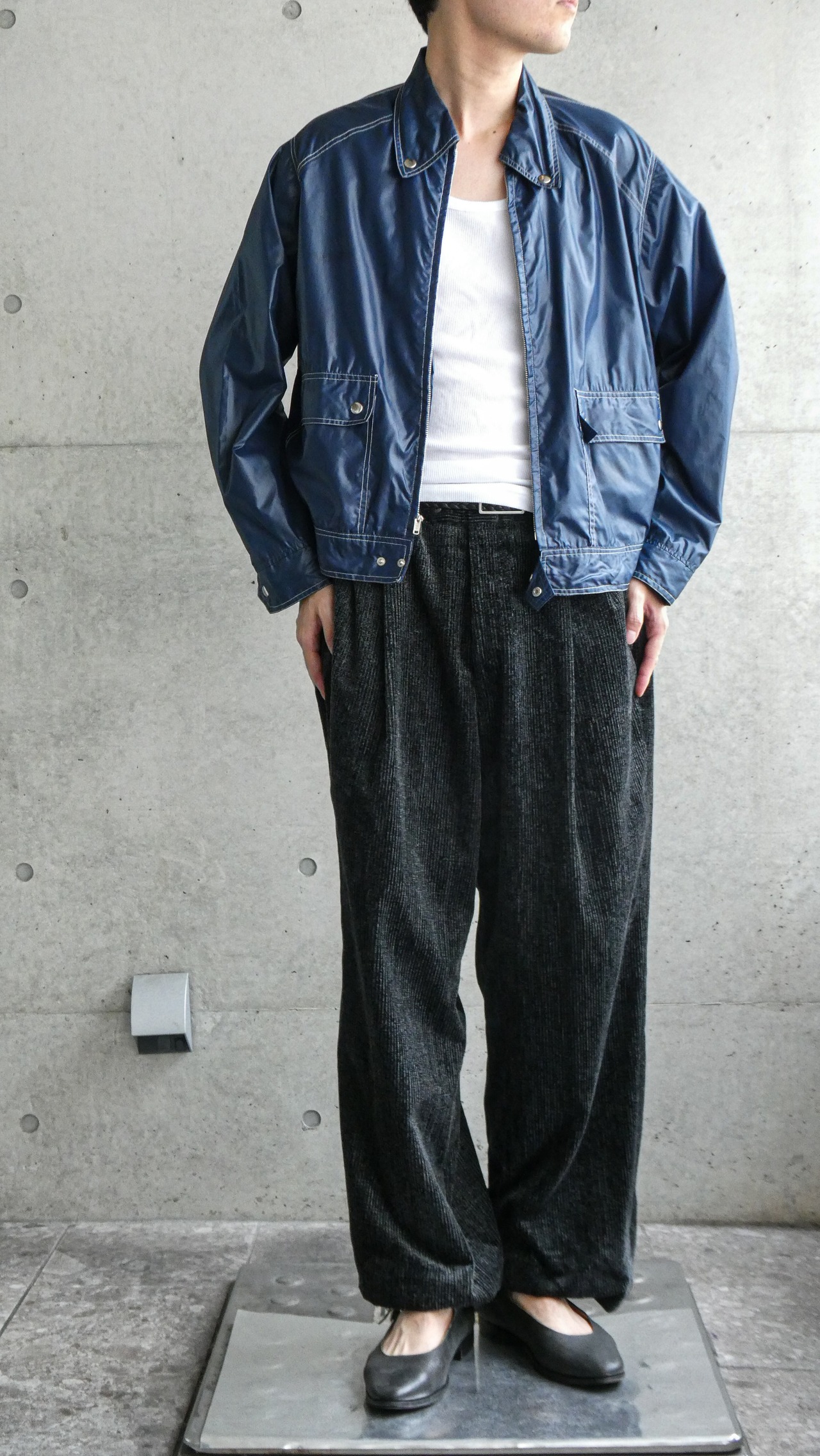 vintage navy stich nylon blouson