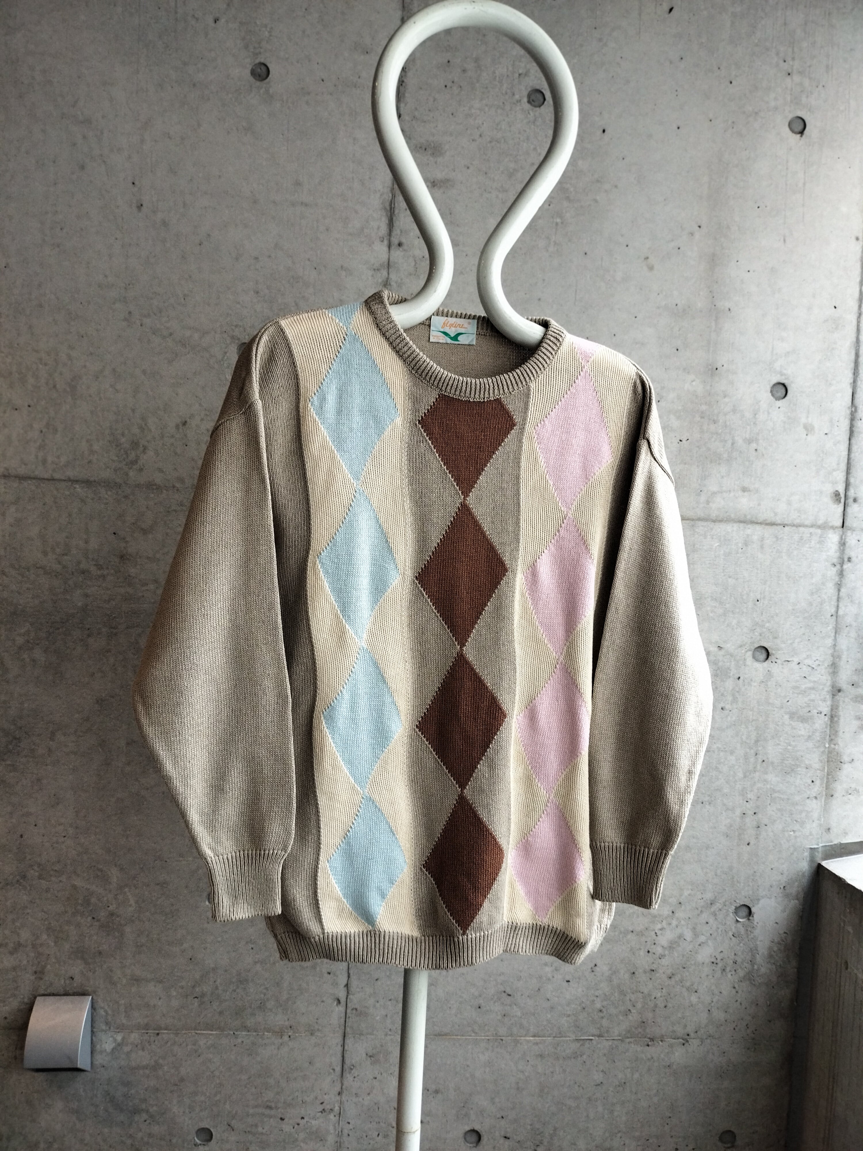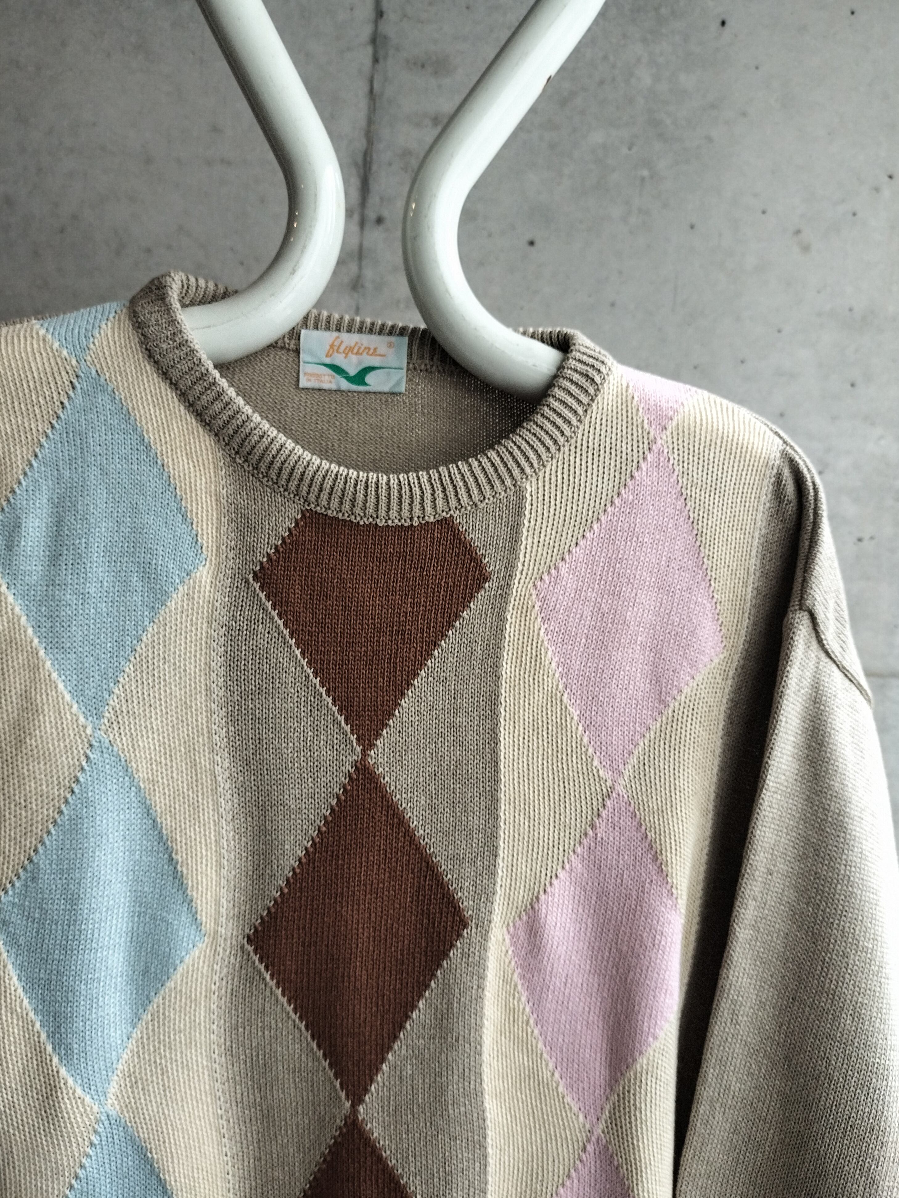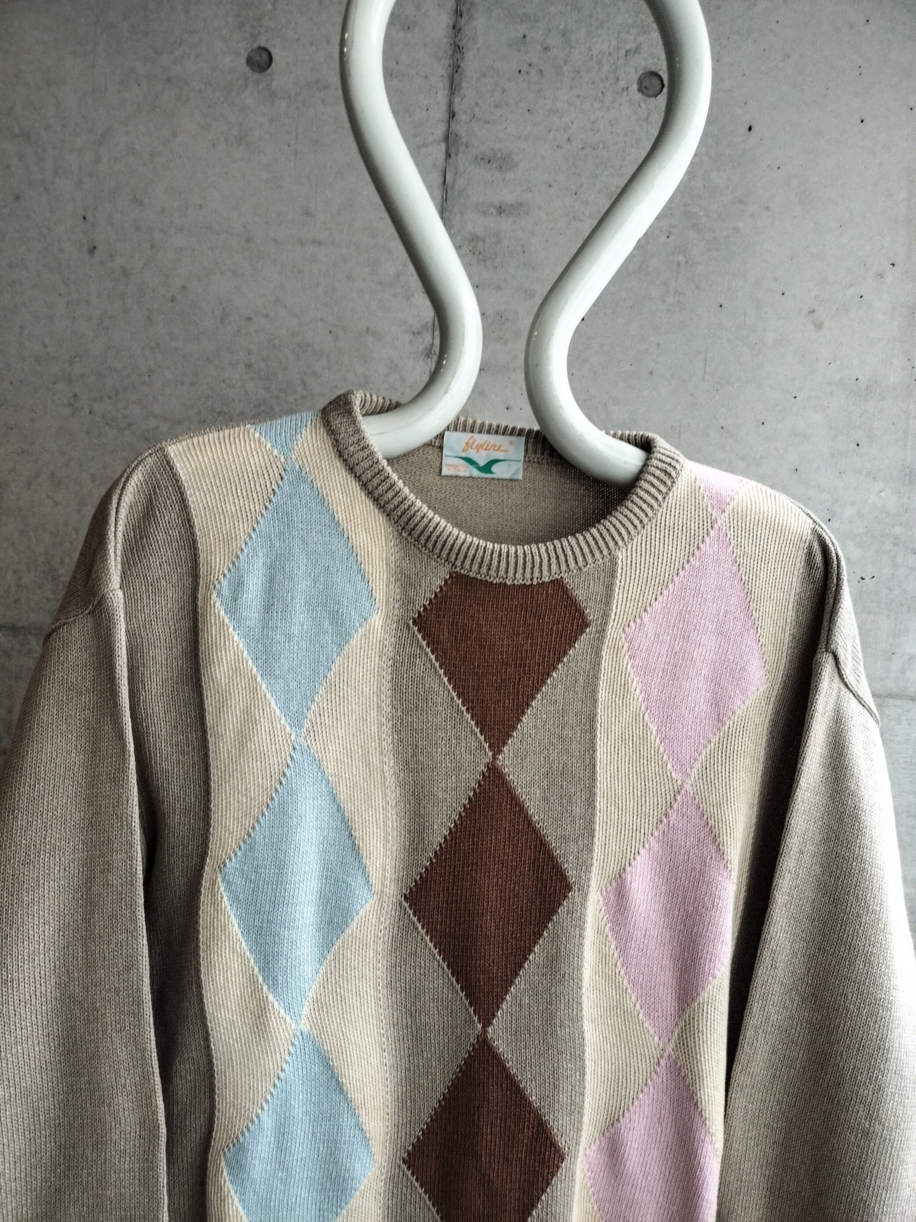 イタリア製のコットンニット。大きいアーガイル柄。薄ピンク、ブルーの柔らかな印象です。背面は無地。単体で可愛いニットです。