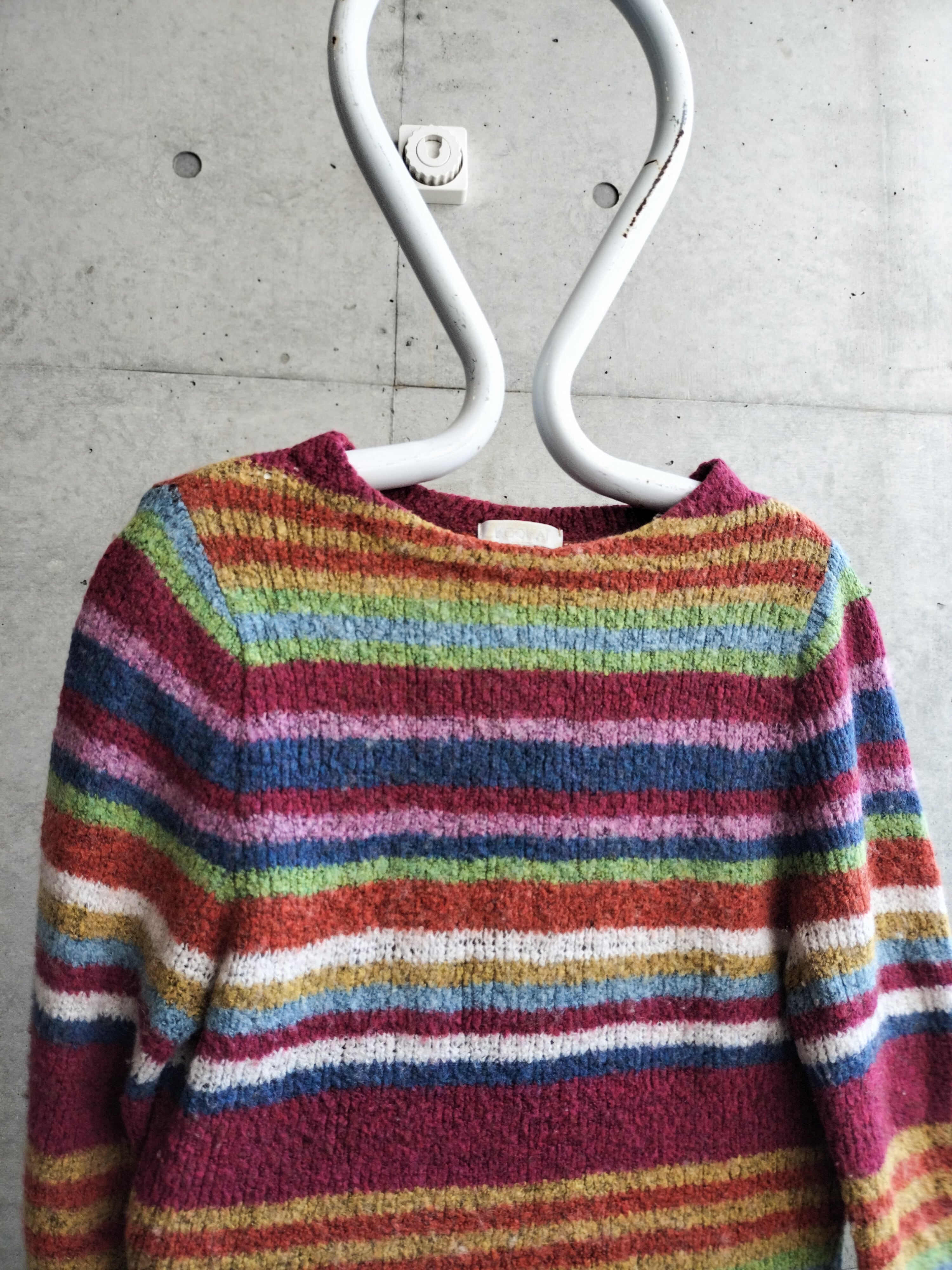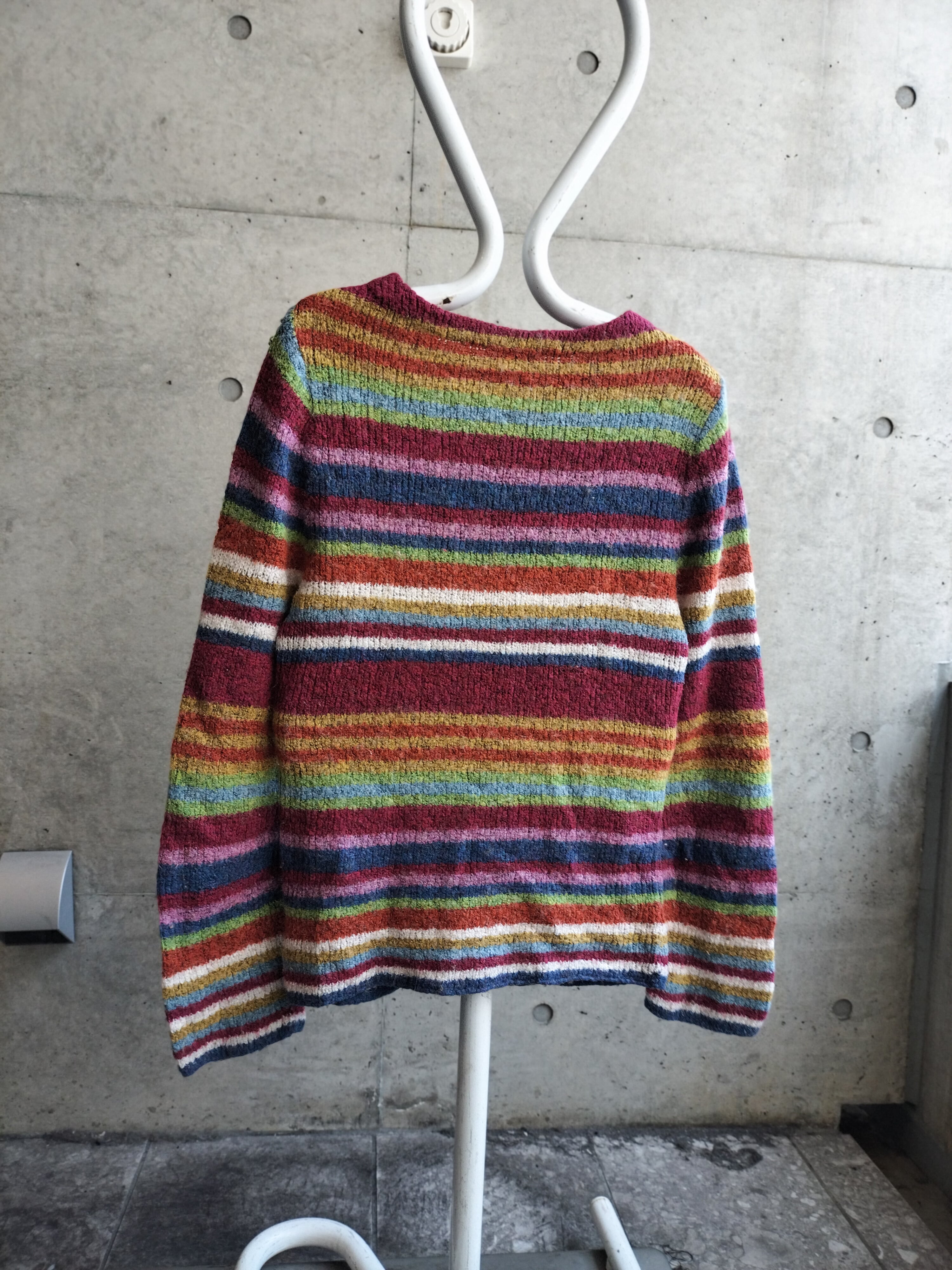 レインボーカラーのボーダーニット。凄く発色が綺麗です。着るとすんなりハマる配色です。レディース向けサイズ。