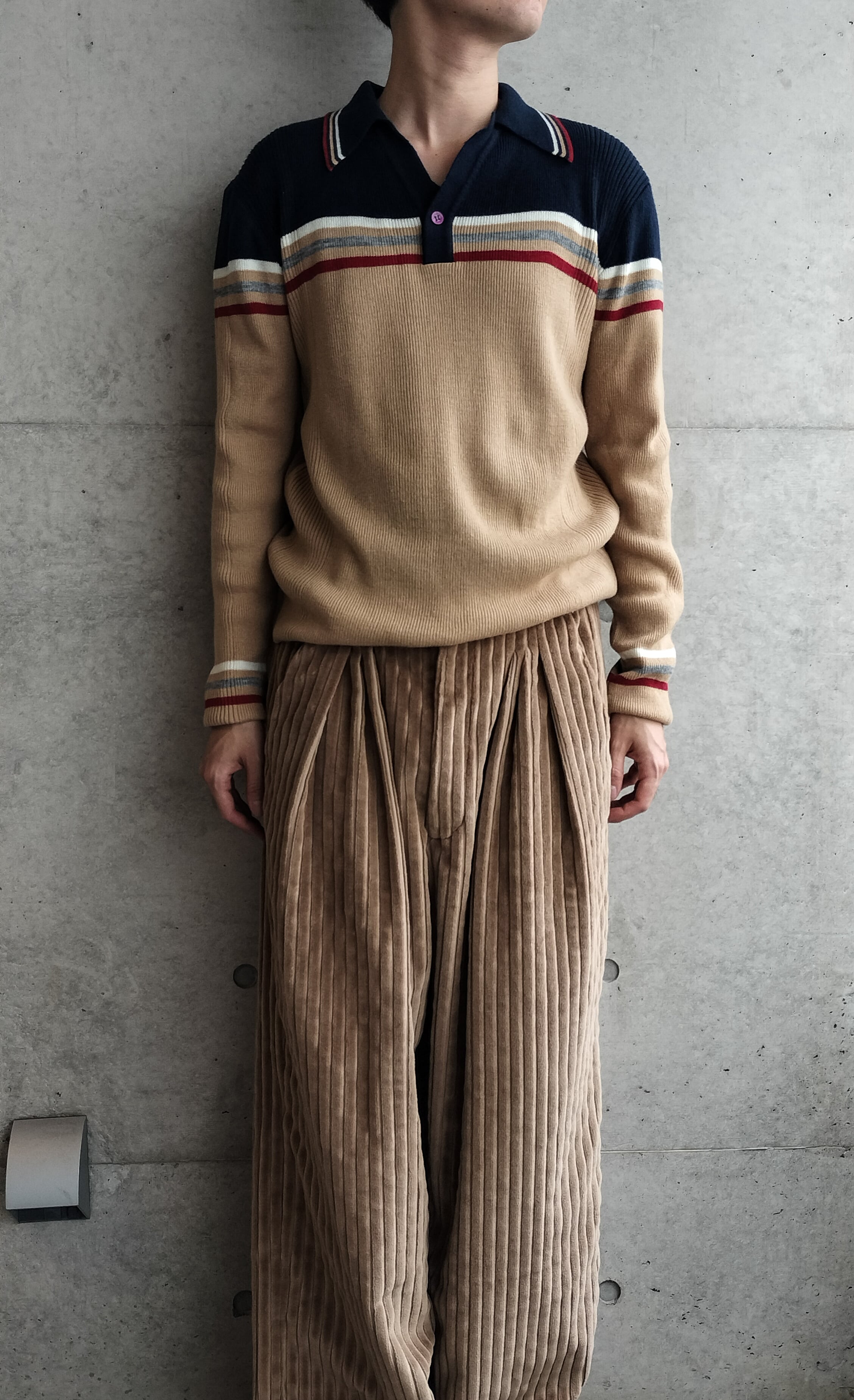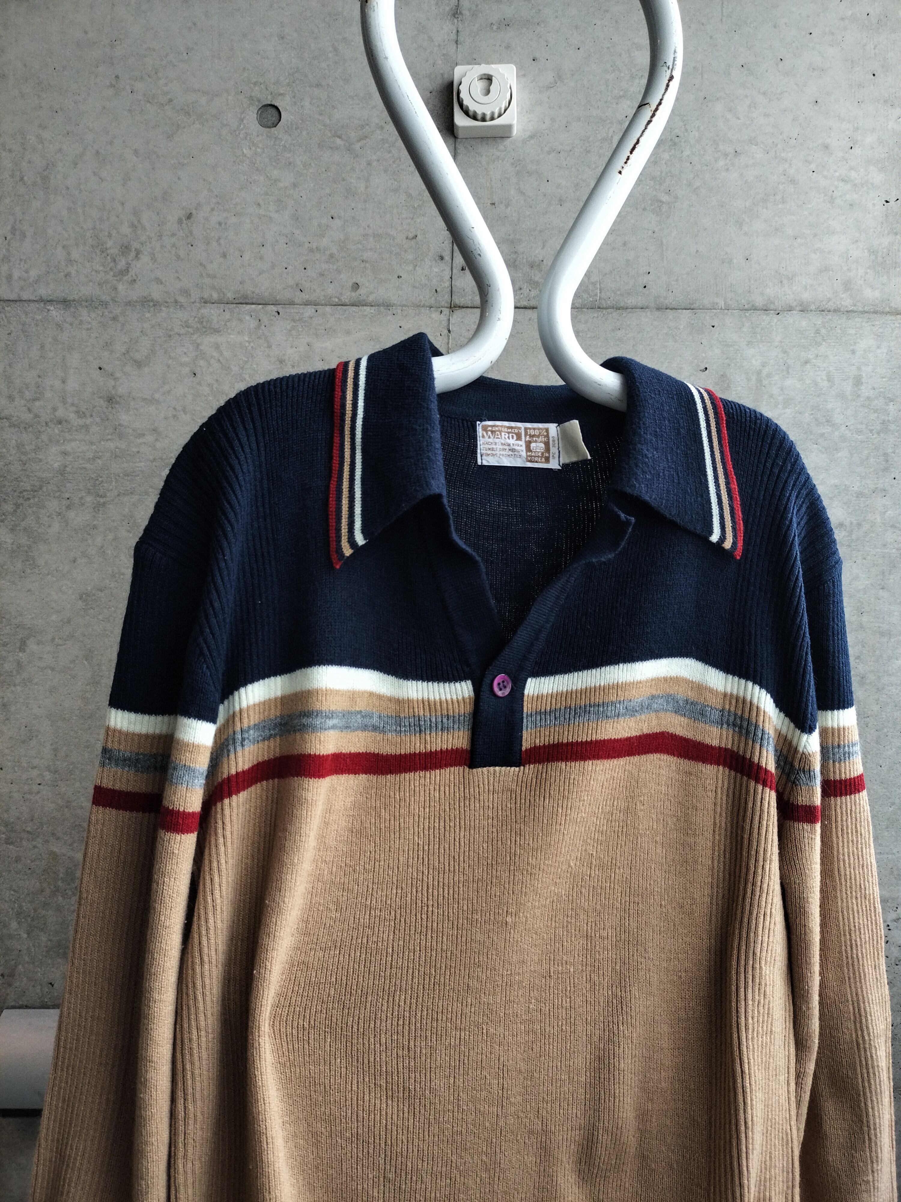 モンゴメリーワードのニットポロ。脇部分がリブ編みになった切替。シルエットも綺麗です。細身のメンズ向けサイズです。