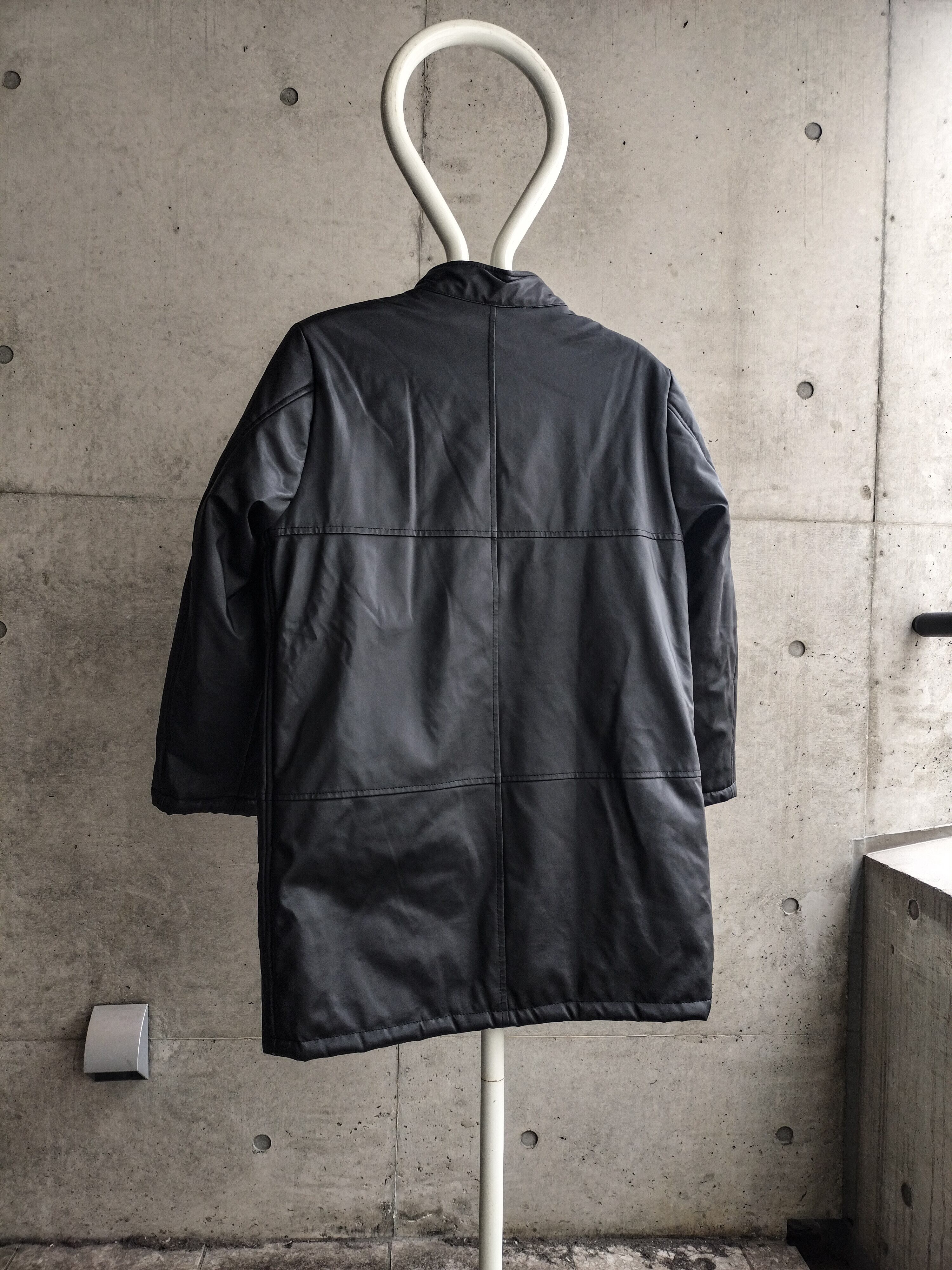 スペシャルなコートの入荷。イタリア製。珍しいコートでレザー切替。レザーとテック生地の異素材感が最高です。オールブラックなのも◎。嬉しいダブルジップ仕様。いつも入荷している物よりワンサイズ小さめです。