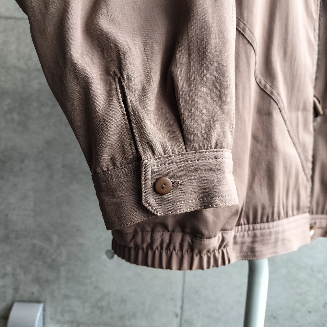 襟ボア仕様のミルクティーカラーのブルゾン。ボタンはトグルボタン。前たてからもチラッとボアが見えて、いいアクセントです。ラグランでしっかり肩も落ちます。