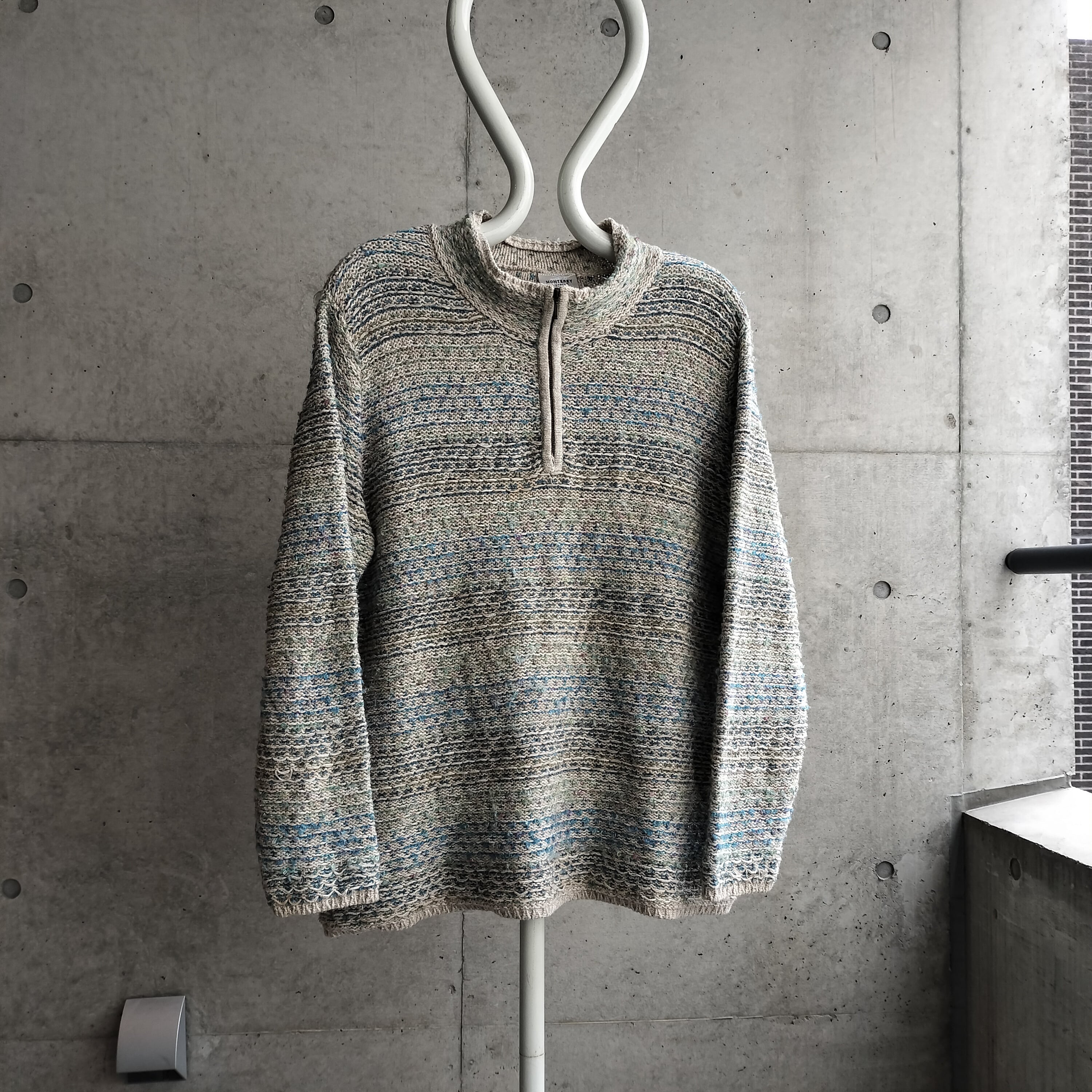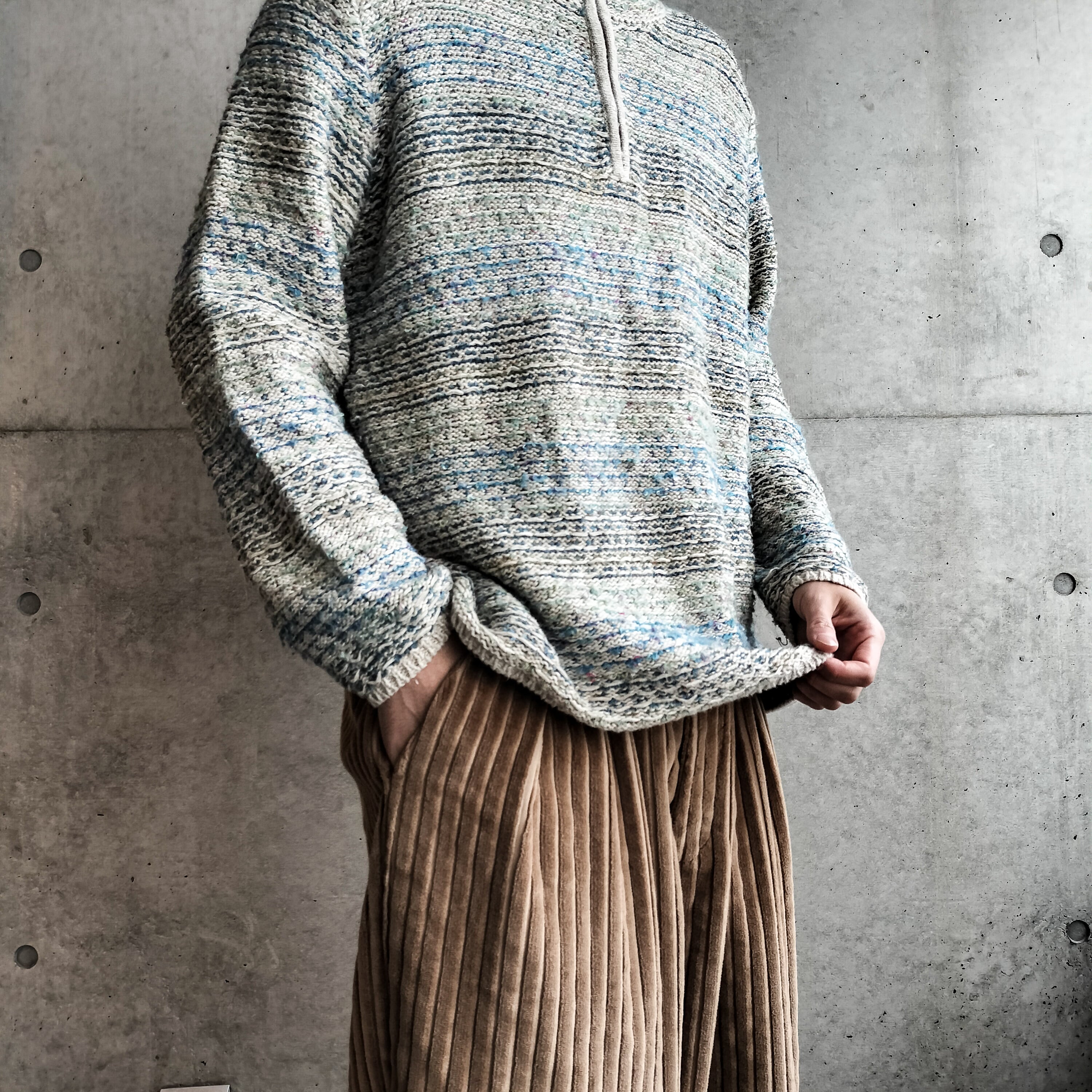 スペシャルなハーフジップニット。うちらしい変な変わった生地。ギャルっぽいミックス生地で少し赤やゴールドのラメが入ってます。でもメンズが着ても全くいやらしくない生地感。